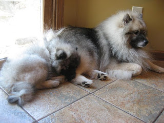 Heidi's favorite place to nap - in front of the door, with Moon as a pillow